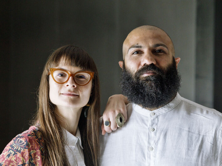 Ahad Moslemi und Alice Mestriner sind ein zeitgenössisches Künstlerduo, das sich in seiner Arbeit mit der Untersuchung und Bildung von Bedeutungen beschäftigt, die im Laufe der Zeit verändert oder modifiziert werden, verloren gehen oder neu definiert werden. Während ihres Fellowships entstand die Arbeit PARADEISOS. SCHICHTEN DER ERINNERUNG, ein aus Staub gewebter Teppich.