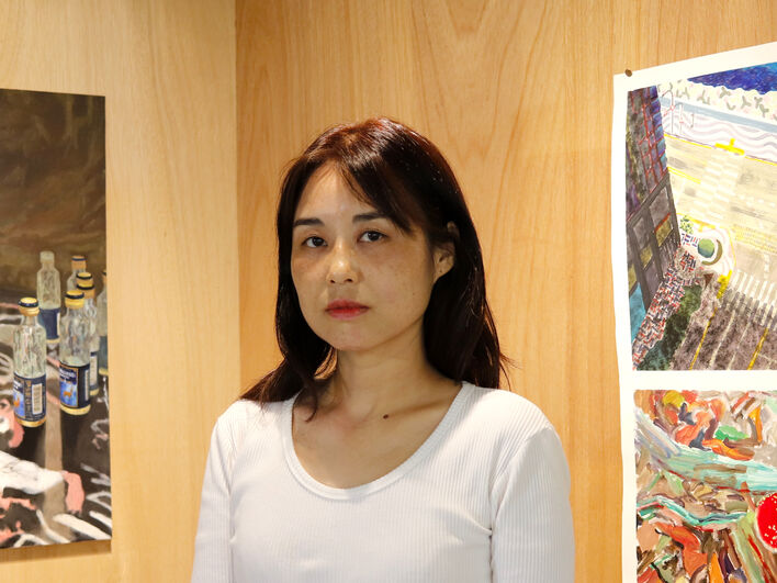 Yerin Hong reagiert mit ihrer Malerei spontan auf urbane Räume. Nach zehn Jahren in Berlin kehrte sie nach Busan, Korea zurück. Aus flüchtigen Momenten und Straßenbildern beider Städte schafft sie einen visuellen Dialog zwischen Berlin und Busan. Ihre Arbeiten wurden 2023 in der Ausstellung „Ari-Arirang“ im Humboldt Forum gezeigt und erzeugten eine vielschichtige Resonanz im deutsch-koreanischen Austausch.