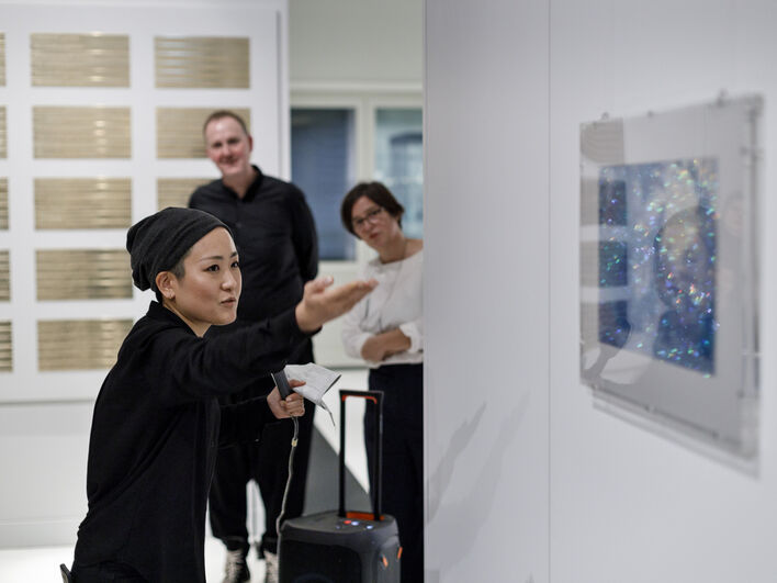 In der Ausstellung „Erinnerte Bilder, imaginierte Geschichte(n) – Japan, Ostasien und ich“ (14. September 2024 bis 3. Februar 2025 im Humboldt Forum) zeigte Mio Okido neue Arbeiten, die im Rahmen ihres CoMuse-Fellowships entstanden sind.